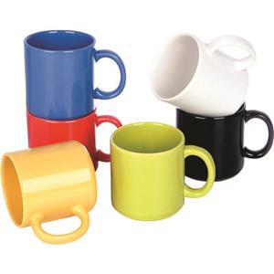 Caneca reta de cerâmica colorida 360ml. Caixinha branca opicinal. Medida aproximada para personalização: 6x6cm | Cores disponíveis: Preto, Azul, Verde, Vermelha, Laranja e Amarela