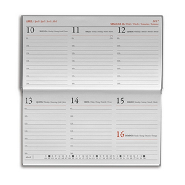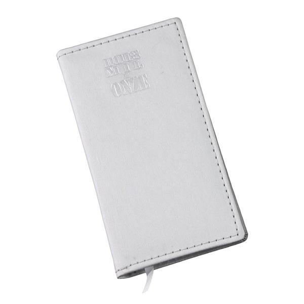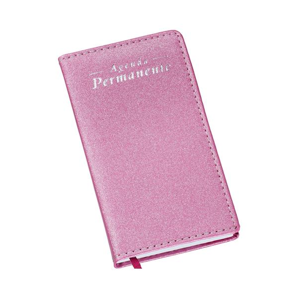 Agenda de bolso (almofadada,capa dura cromia e percalux) Contém: 148 páginas em papel off set 63gr ou em papel reciclado Índice telefônico Planejamento para próximo ano Capa cor azul, preta, grafite, prata e rosa Medidas: 85 x 165 mm
