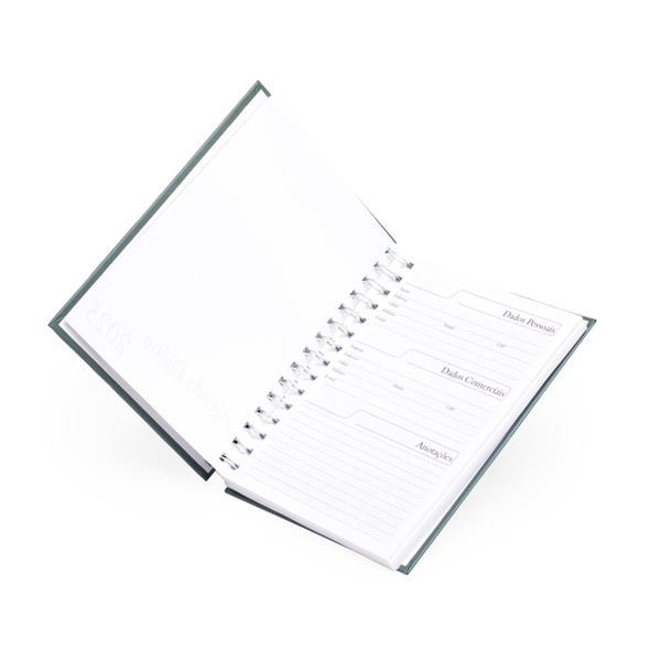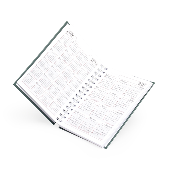 Agenda Wire-o produzida em material sintético, frente com detalhe de 3 listras no canto direito e ano “2024” na parte superior central, verso liso. Contém “bolso” plástico atrás da capa, dados pessoais, calendário de 2023 à 2025, mapa do Brasil, mapa global, índice telefônico e planejamento. • Medida: 20x16x2,7cm • Peso(g): 385g • Cores disponíveis: Azul e Vermelho