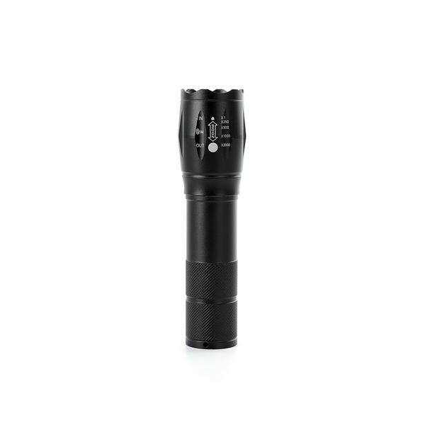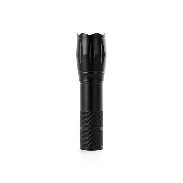 Lanterna led recarregável com zoom de regulagem e três estágios de iluminação, material metálico. Acompanha cordão de nylon e cabo USB-V8. Largura: 3,3 cm Comprimento: 12,6 cm Medidas aproximadas para gravação (CxL): 2,7 cm x 1,5 cm Peso aproximado (g): 102 Cor disponíve: Preto