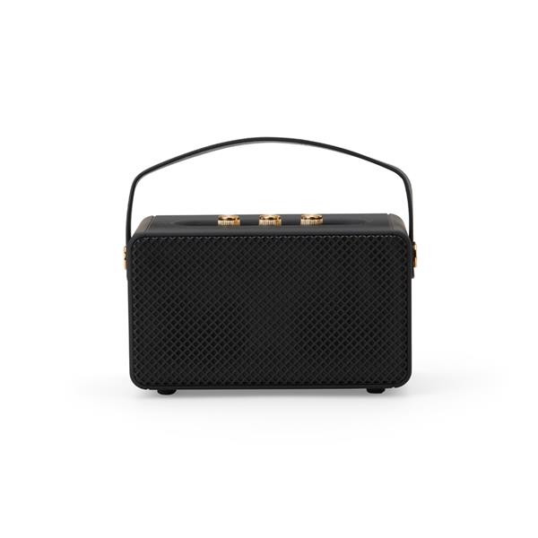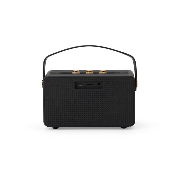 Design retrô e potência sonora! Caixa de som multimídia com tecnologia TWS. Feita em plástico resistente com classificação IPX4, esta caixa de som oferece conectividade bluetooth, rádio FM, suporte para cartão TF (MicroSD) e pen drive. Equipada com a tecnologia TWS para sincronização de duas caixas em uma, prepare-se para uma experiência sonora imersiva e potente. Com alça para transporte e pés antideslizantes, seu design versátil facilita o transporte e a transforma também em uma charmosa peça decorativa. Altura: 9,4cm Largura: 17cm Profundidade: 9,4cm Medidas aproximadas para gravação (CxL): 2 cm x 12cm Peso aproximado (g): 590