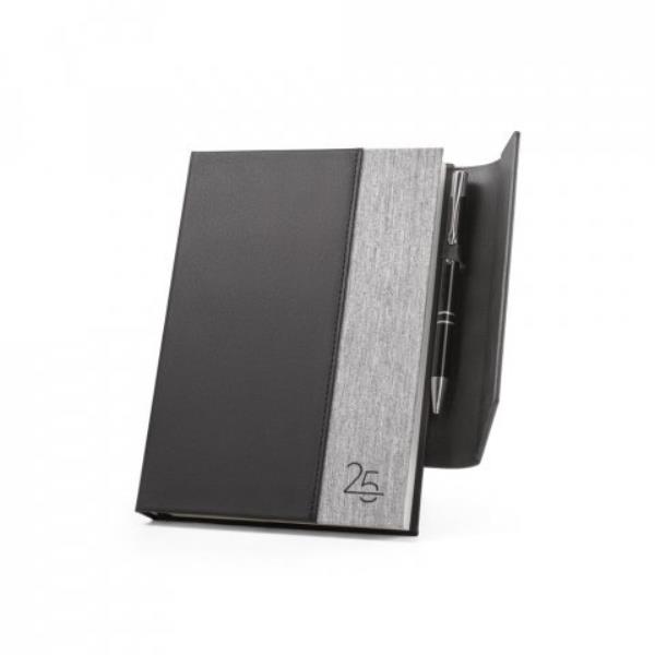 Agenda A5 em PU reciclado (58%) e 300D PET (100% rPET) com fecho magnético. Está organizada num plano diário. Inclui suporte para esferográfica (não incluída) e marcador em fita. Uma escolha com classe e requinte para o seu cotidiano. 148 x 210 mm