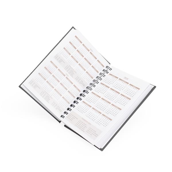 Agenda 2025 com capa emborrachada e wire-o metálico. Contém páginas para dados pessoais, calendários de 2024 à 2026, orçamentos, anotações, planejamentos, endereços de contatos e mapas. Altura: 20,6cm Largura: 15,6cm Espessura: 2,8cm Medidas aproximadas para gravação (CxL): 20 cm x 12,5cm Peso aproximado (g): 448 AZUL, CINZA, PRETO, VERDE, VERMELHO