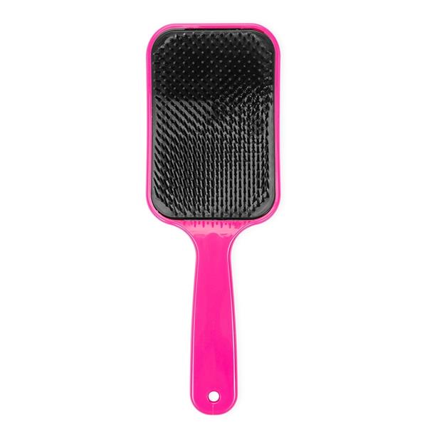 Esta escova raquete ajuda a construir penteados mais belos e completos para o dia a dia. Feita inteiramente em plástico, ela desembaraça e alinha facilmente os fios sem quebrá-los. Conta com cerdas flexíveis posicionada em alturas diferentes, o que a transforma em uma escova seja ideal para todos os comprimentos e curvaturas de cabelos, especialmente os mais longos e volumosos. Largura: 7,5 cm Espessura: 3cm Comprimento: 21,5cm Peso aproximado (g): 62 Cores disponíveis: PINK, PRETO, ROSA, VERMELHO