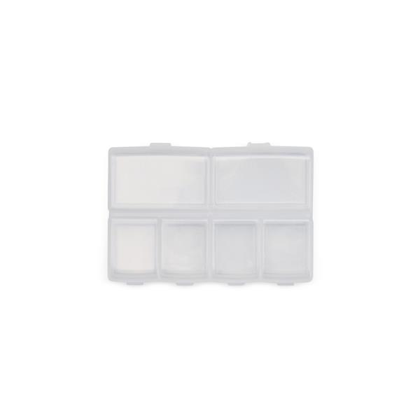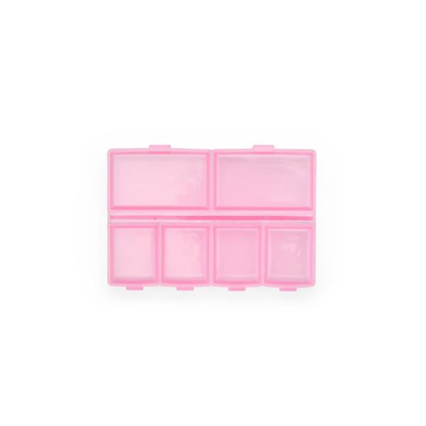 Um porta comprimidos na medida certa para dar mais possibilidades de organização em uma rotina de cuidados. Feito plástico, possui ao todo seis compartimentos, sendo dois maiores com capacidade de até 15 ml e outros quatro menores com 10 ml ao todo. Tudo isso garante mais opções de arranjos para armazenar comprimidos de maneira ordenada e eficiente. Espessura: 1,9cm Comprimento: 9,5cm Peso aproximado (g): 23 Cores disponíveis: AZUL, ROSA, TRANSPARENTE