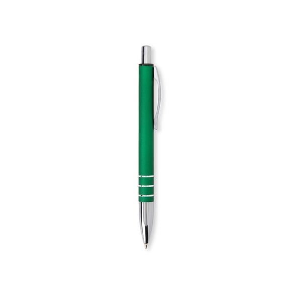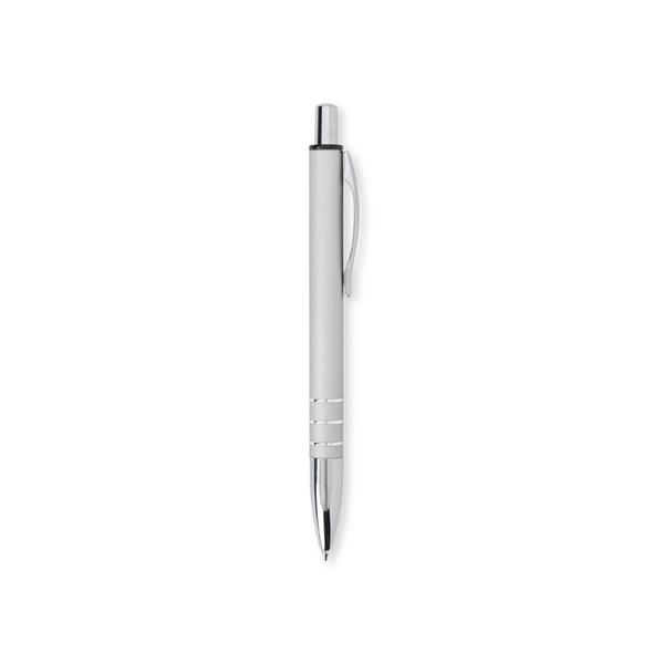 Caneta metálica com acabamento fosco, clipe metálico e ponteira plástica. Carga esferográfica azul 1.0mm e acionamento por clique. Largura: 1,6cm Comprimento: 14,4cm Peso aproximado (g): 18 Cores disponíveis: AZUL, BRANCO, COBRE, PRATA, PRETO, VERDE, VERMELHO