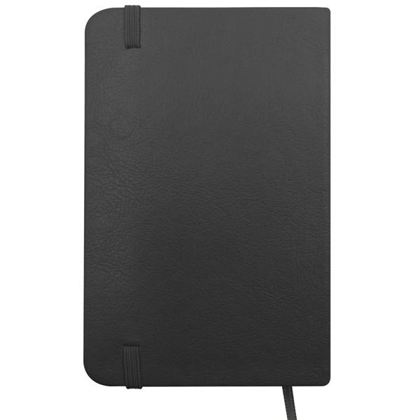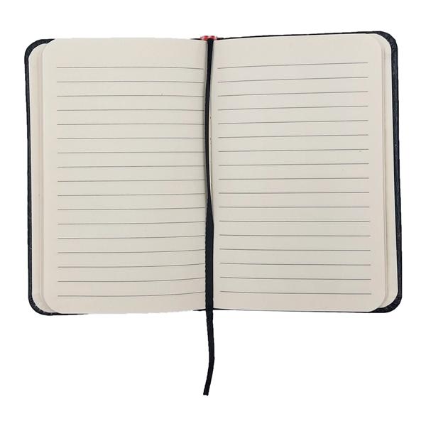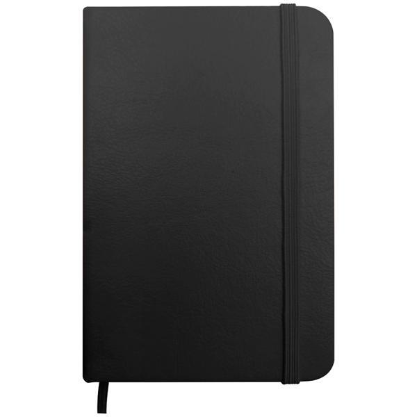 Bloco de anotações capa dura em couro sintético, com elástico para fechamento, 80 folhas amarelas com pauta, marca página de cetim da cor do bloco, Caneta cilíndrica em metal com acabamento emborrachado apenas cor branca não é emborrachada, acabamento fosco e acionamento por clique. Dimensões: 14x 9cm Tamanho total | Medidas da Caixa 2,6 x 15,2 x 17cm Cores disponíveis: Preto, Vermelho, Azul