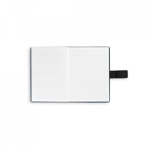 HILST. Caderno A5 com capa dura em 80% materiais reciclados (PU reciclado e poliéster reciclado) estruturado em duas partes: a primeira tem 128 páginas pautadas e a segunda 128 páginas lisas Caderno A5 com um design moderno desenvolvido para ser versátil no seu dia de trabalho. Composto por uma capa dura em 80% materiais reciclados (PU reciclado e poliéster reciclado), este caderno está estruturado em duas partes: a primeira tem 128 páginas pautadas e a segunda 128 páginas lisas, ambas feitas de um material proveniente de gestão florestal sustentável. Contém uma fita para fecho magnético do caderno. 150 x 210 mm