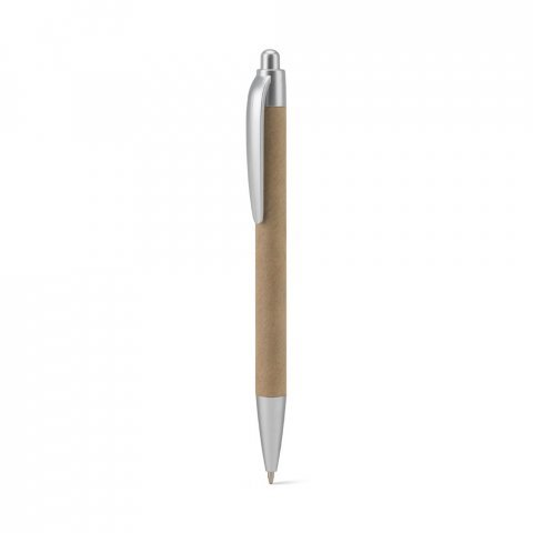 VILAÇA. Esferográfica em papel 100% reciclado e pormenores em ABS 100% reciclado com escrita em azul Esferográfica em papel 100% reciclado e detalhes em ABS 100% reciclado. A esferográfica tem clipe e escrita em azul até 1,5 km. Uma esferográfica com materiais reciclados para dar destaque à sua marca. A cor e o resultado da impressão nos materiais naturais pode variar entre produtos. ø10 x 138 mm