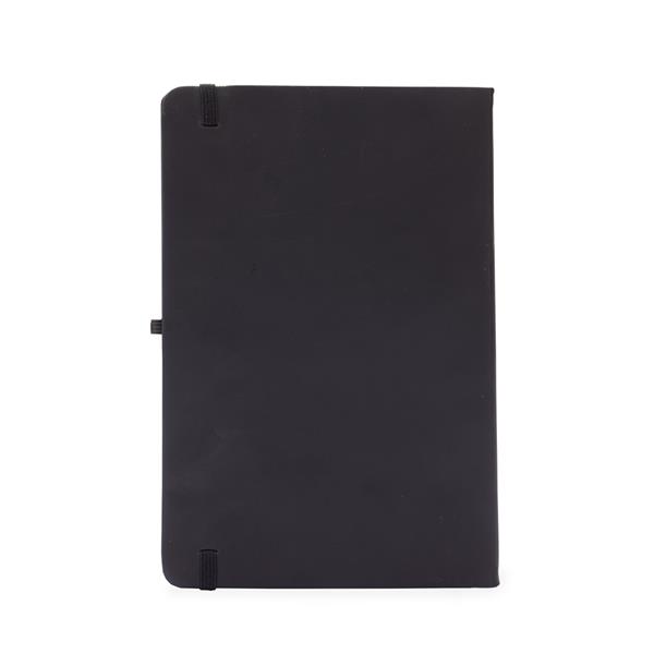 Caderneta de capa emborrachada com marca-páginas em cetim e elástico para fechamento. Possui cerca de 79 folhas levemente amareladas sem pauta. Largura: 14,2cm Espessura: 1,4cm Comprimento: 21,2cm Peso aproximado (g): 292
