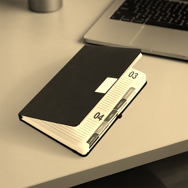 Agenda diária 2026 com capa em linho com detalhe em metal, marca-páginas feito em cetim, porta-canetas lateral e fechamento em elástico. Possui páginas para planejamento mensal, calendários de 2026 a 2028, além de listas de conversão de pesos e medidas, contatos e códigos DDI. Altura: 21cm Largura: 14,5cm Espessura: 2cm Peso aproximado (g): 93