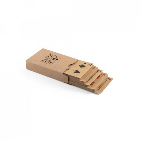 Baralho de 54 cartas clássicas em papel kraft Baralho com 54 cartas clássicas em papel kraft, proveniente de gestão florestal sustentável, ideal para compartilhar bons momentos com amigos e família. Fornecidas em caixa presente de papel kraft reciclado. A cor e o resultado da impressão nos materiais naturais pode variar entre produtos. 60 x 90 x 20 mm