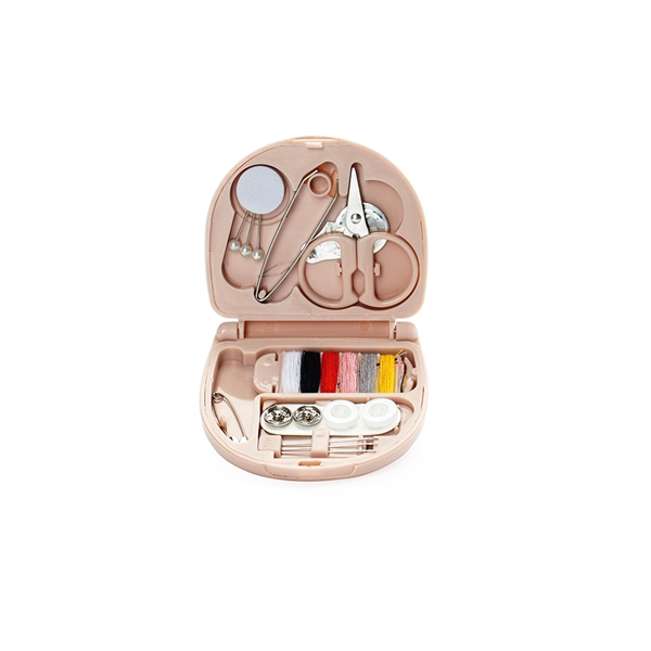 Kit de costura com embalagem plástica de acabamento brilhante e trava para fechamento. O conjunto inclui: três alfinetes de cabeça, uma pinça, um passador de linha, uma tesoura, um alfinete de segurança, um jogo de linhas com seis cores diferentes, dois botões, dois colchetes de pressão e três agulhas pequenas. Largura: 7cm Espessura: 1,7cm Comprimento: 6,5cm Peso aproximado (g): 33 AZUL CLARO, ROSA