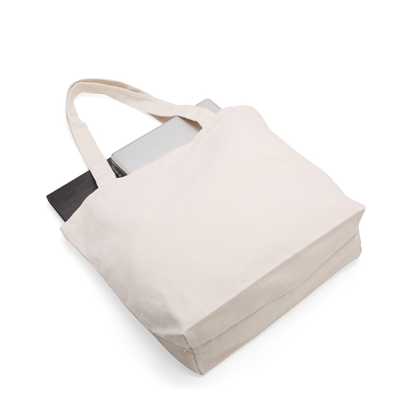 Sacola em lona resistente a respingos dágua. Possui duas alças fixadas por costura interna. Altura: 32cm Largura: 43cm Profundidade: 13cm Comprimento: Alça 30cm Peso aproximado (g): 192 Cores disponíveis: BEGE, PRETO