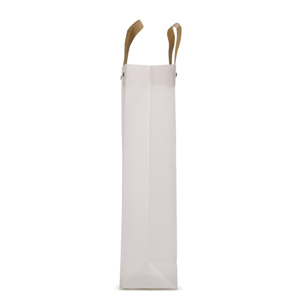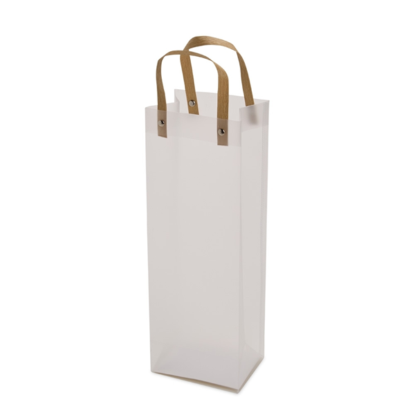 Sacola plástica com formato retangular, acabamento fosco e alças em papelão fixadas por botões metálicos. Altura: 35cm Largura: 12cm Profundidade: 9cm Peso aproximado (g): 33