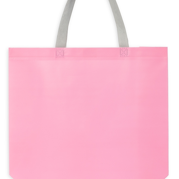 Sacola em TNT laminado impermeável e costura termosselada. Altura: 32cm Largura: 40cm Profundidade: 15cm Peso aproximado (g): 57 Cores disponíveis: BRANCO, ROSA