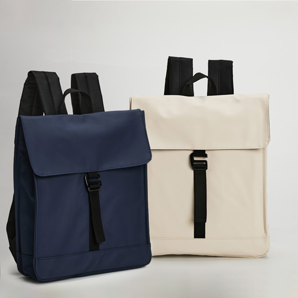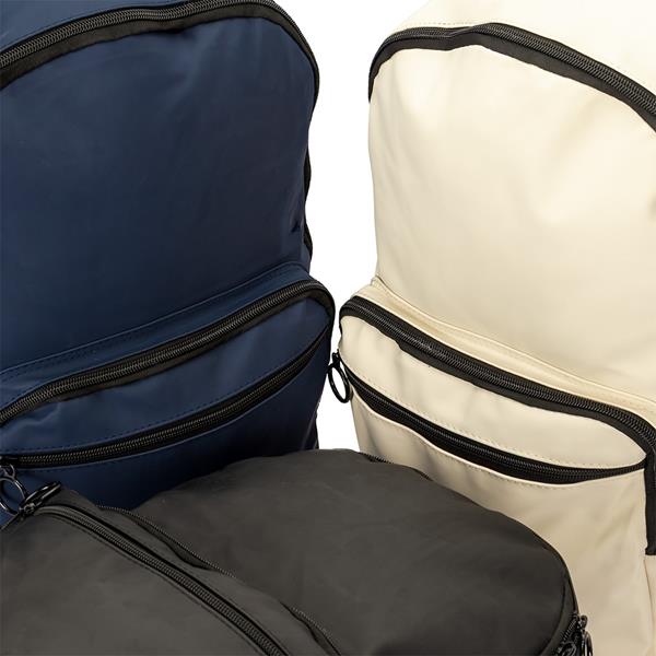 Mochila confeccionada em Poliéster PVC mescla com detalhes em couro sintético...