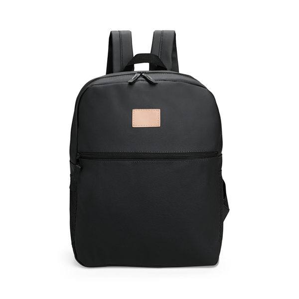 Mochila feita em couro sintético impermeável, com fechamento em zíper e...