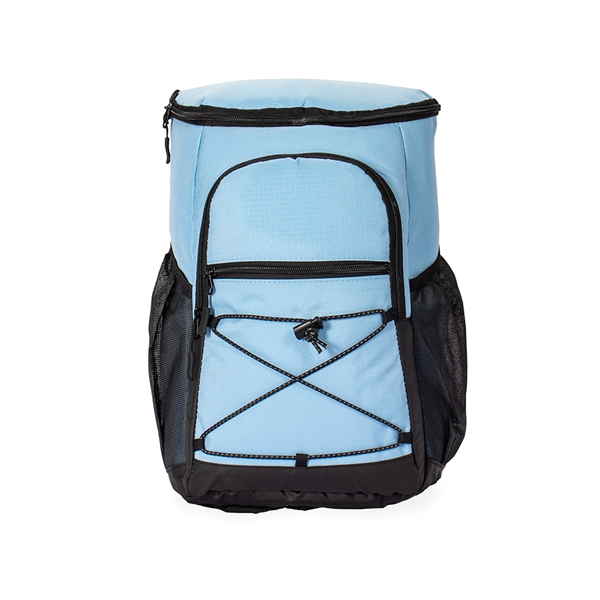 Mochila térmica confeccionada em poliéster impermeável com detalhes em couro...