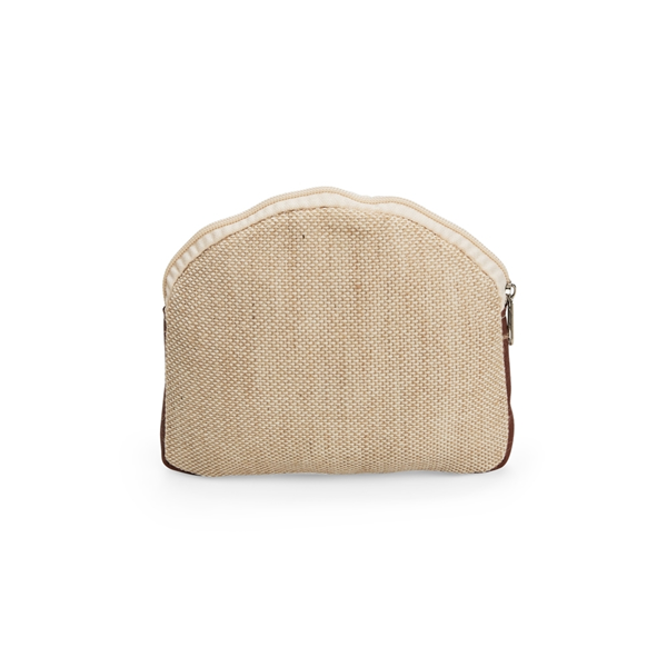 Nécessaire confeccionado em juta com fechamento em zíper e detalhes laterais...