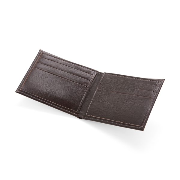 Carteira em couro com design compacto e sem fechamento. Possui seis divisórias...