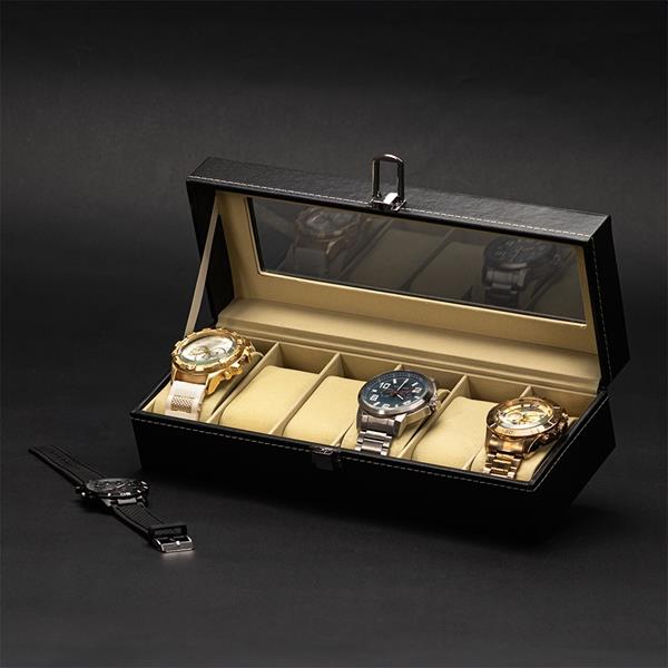 Porta-relógios com acabamento em couro sintético à base de PVC e...