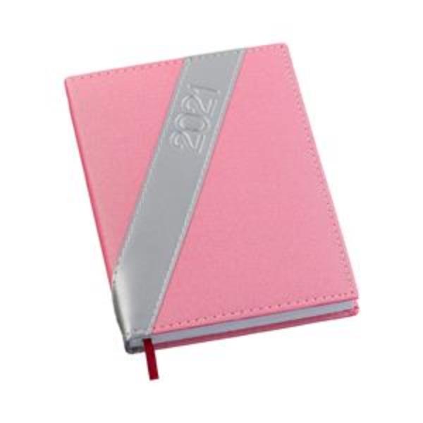 Agenda Diária Capa Metalizada Rosa com Prata | Capa: Couro Sintético 0,6mm...