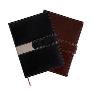 Agenda B5 em couro sintético. Fecho magnético com peça metálica brilhante....