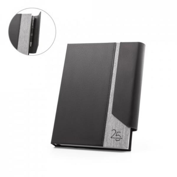 Agenda A5 em rPET com fecho magnético em PU, marcador em fita e suporte para...