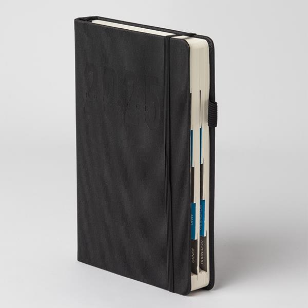 Agenda diária 2025 de couro sintético. Contém fita de cetim marca página,...