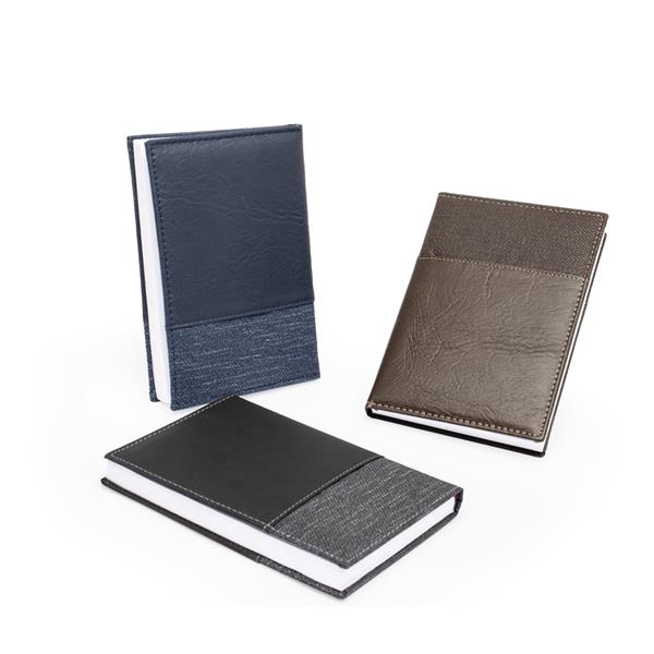 Agenda bi-material A5 em couro sintético e tecido em poliéster. Agenda com...
