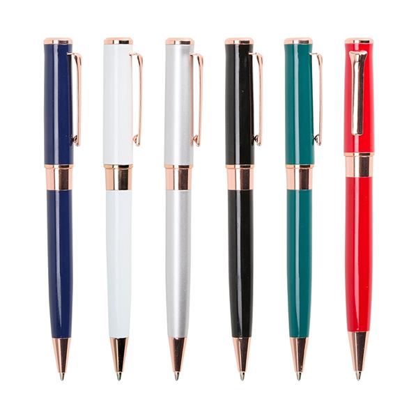 Caneta esferográfica com carga azul de 1.0mm. Possui construção metálica e...